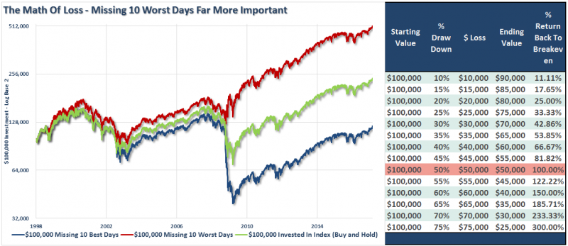 The granddaddy of indexing Jack Bogle of Vanguard readily tells the media that stocks are ‘overpriced.’ Future returns will be below average. In the next breath, he’ll suggest go all in because there’s nothing else you can do. If anything, that’s a pretty dangerous passive attitude to have considering the wealth carnage from math of loss, which again, is a topic that is never discussed.
